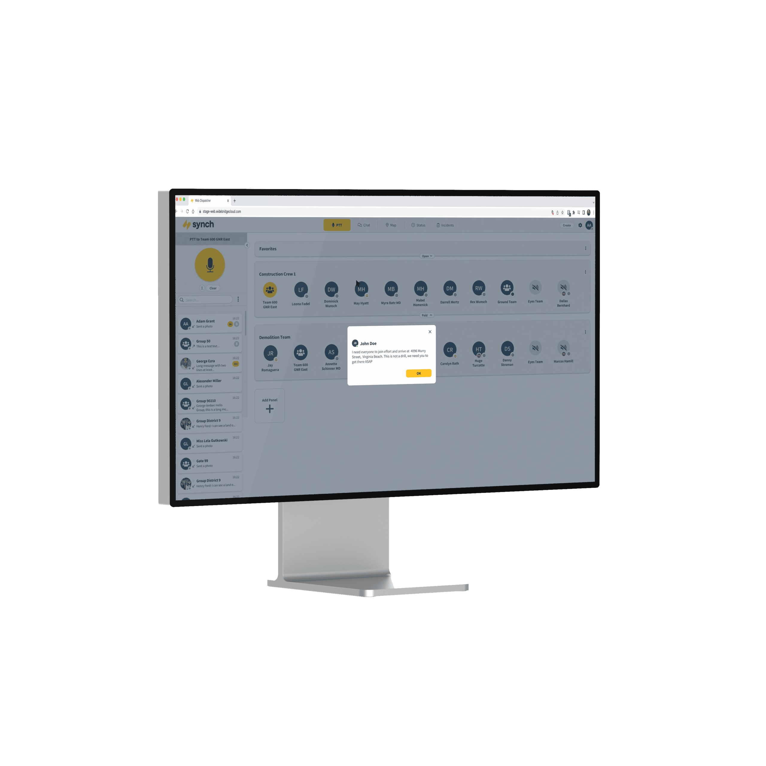 Send burst announcements to multiple users. Splash messages act as text announcements which appear on top of any Synch app page to make sure that the message isn’t missed. For critical situations and screenless devices, splash messages can be announced as PTT with Text to Speech (TTS) and added with optional sound alert.