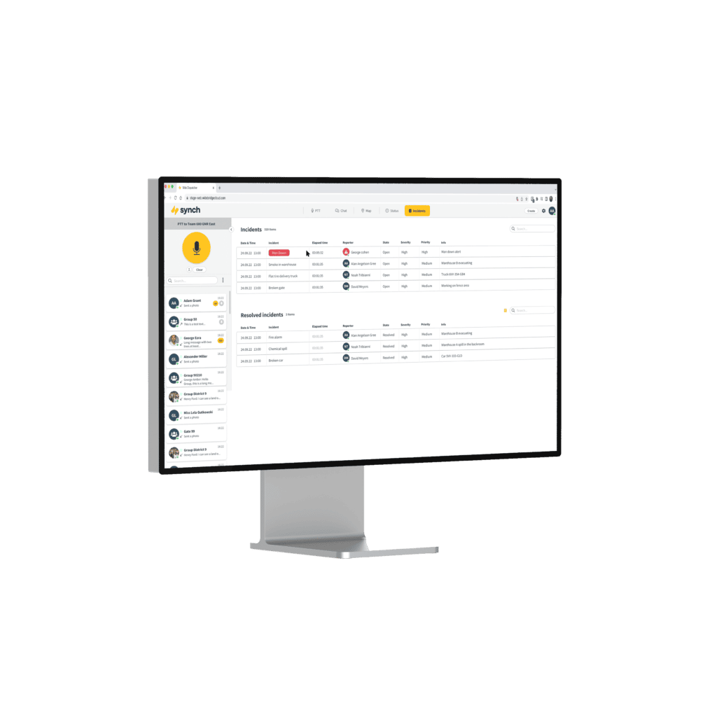 Users can update dispatchers on issues and incidents that need attention via Synch’s incident reporting tool, or via PTT to dispatcher. Incidents are logged and tracked, marked with priority, severity and can be resolved by dispatchers.