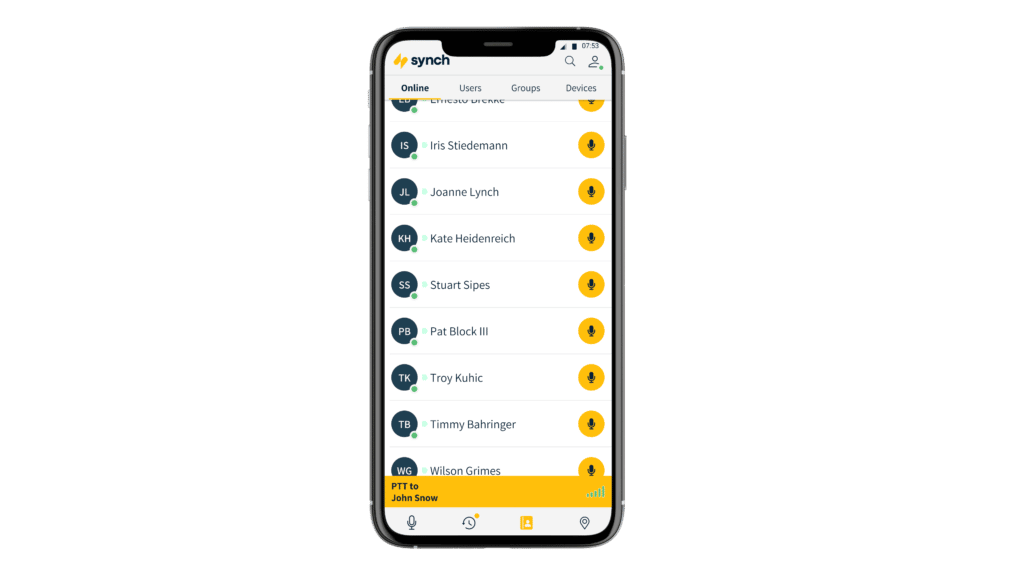 Few of our customers use Synch as a tactical communications platform on a Mobile Private Network (MPN). Large distributors can deploy Synch under the hood in a White Label format as their own service.